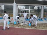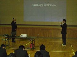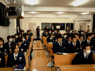 中越沖地震をきっかけに現在、 ボランティアの初歩について判りやすく 寒い中、最後まで興味深く真剣に耳を傾けた生徒たち