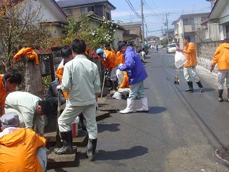 PTA27名と他の生徒44名、引率5名は仙台市宮城野区で3班に分かれてそれぞれの場所で、ヘドロの除去やゴミ、瓦礫の撤去などの作業をしました。震災から3ヶ月経ってもまだまだ多くの場所で片づけが済んでいないのが現状です。