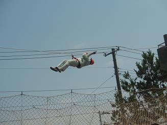 壁を昇る訓練 ロープで高所をつたって移動