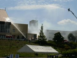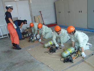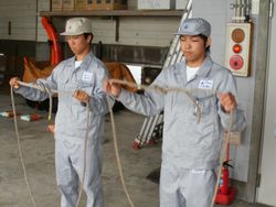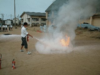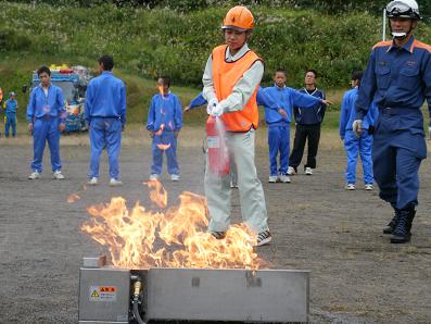 中学生が屋上から救出されました。 消火器による初期消火訓練。