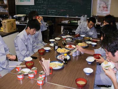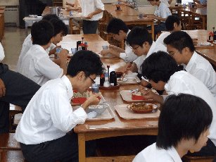 柏崎工業テント 校舎内の食堂