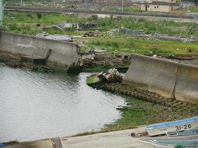 壁には撤去OKと書いてある 津波で決壊した防波堤