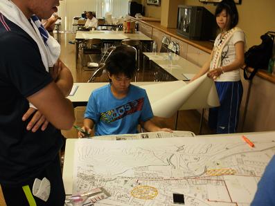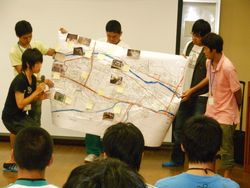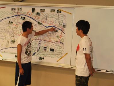■身延の町をタウンウォッチング、防災マップづくりを体験しました。 ■班別に防災マップを作成し、プレゼンテーションしました。