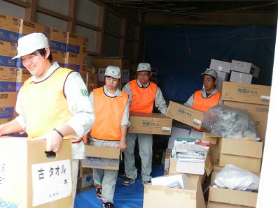 避難所での荷物の仕分け、清掃、炊きだしの運搬などの手伝いをしました。