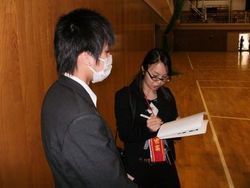 ■演後は新聞記者が防災コースの生徒に感想などを取材していた。