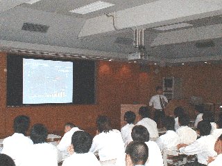 演題の「地震によるライフラインの復旧」に従い中越地震及び中越沖地震での水道ガスの復旧作業の進め方の説明などを判りやすく話していただいた。更にこの度の東北大震災で甚大な被害を受けた仙台市における水道復旧支援の様子などを話され、生徒は興味深くかつとても勉強になる内容であった。