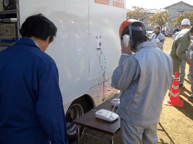 9月26日(日)柏崎市の総合防災訓練が西山中学校、にしやま保育園を会場に実施されました。当日は好天に恵まれ、西山地区住民全体3分の1を超える2,300名が朝早くから参加しました。午前中はバイクによる物資の搬送訓練、救助犬による重傷者の発見訓練、屋上からヘリコプターによる救助訓練などを見学できました。防災エンジアコースの生徒21名は午後からはNTTの方による災害時に衛星を使った非常用移動通信車から生徒の携帯電話に通信する実演。国土交通省からの起震車での大きな揺れの体験、降雨車での過去最大降雨量を体験するなど学校では得られない多くの実習体験をすることができました。