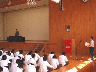■全校生徒が体育館で体験談に耳を傾けました。
